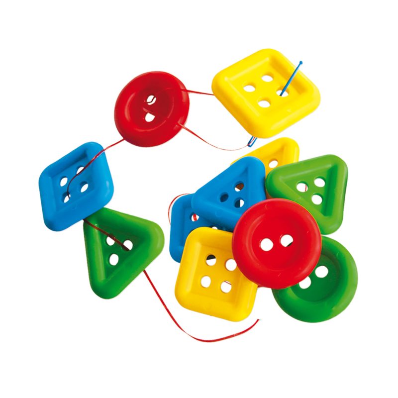 Permite al alumno reconocer las diferentes formas geométricas, realizando trenes de formas, secuencias, etc. El complemento del juego con agujas plásticas con reborde permite practicar el movimiento de pinza.
