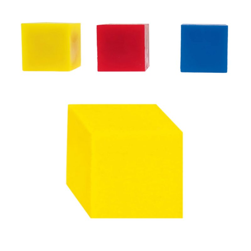 Los cubos de colores ayudan a formar diferentes figuras para obtener áreas, perímetros y volúmenes, formar unidades de conteo, etc.