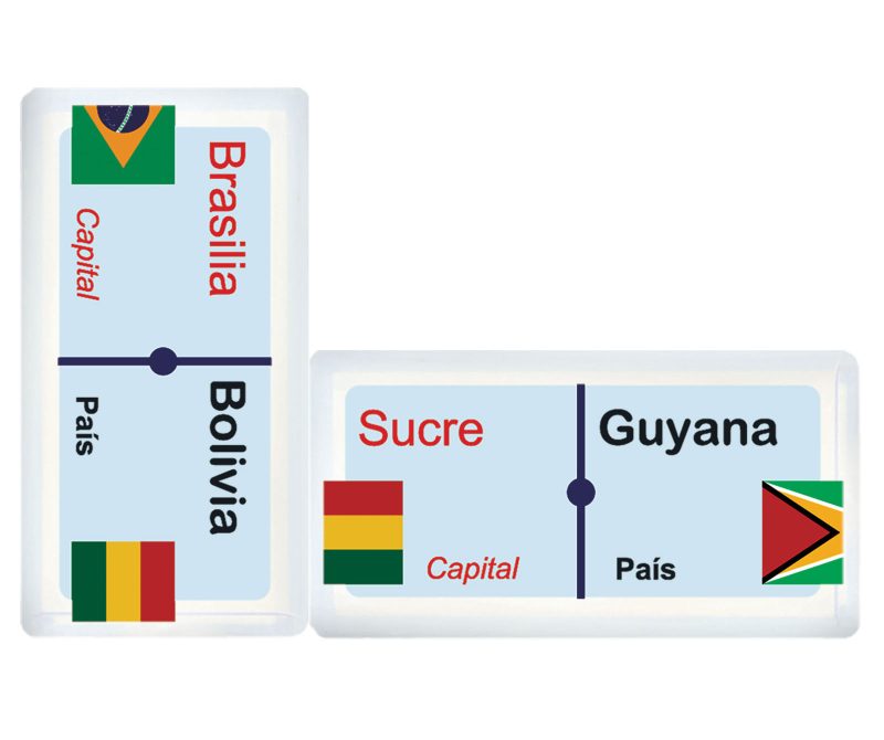 Dominó que de manera ágil y divertida permite al alumno(a) de Primaria alta, reforzar sus conocimientos de Ciencias naturales. Países y capitales de América.