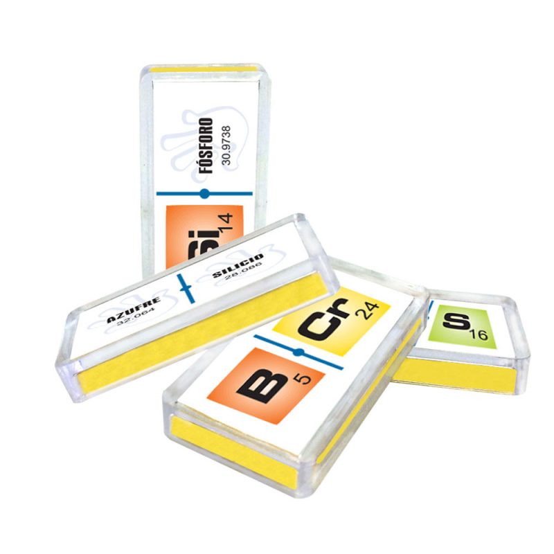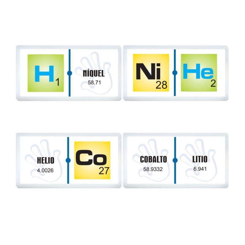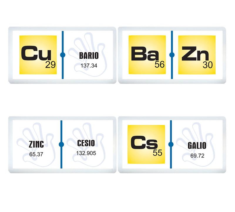Al igual que el dominó tradicional refuerza el conocimento en la tabla periódica de los elementos.