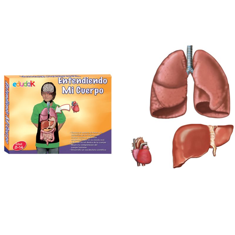 Es un material a escala real que ayuda a los niños a memorizar el nombre de los órganos y a entender su funcionamiento. Desarrolla un vocabulario científico y mejora la comprensión del cuerpo humano.