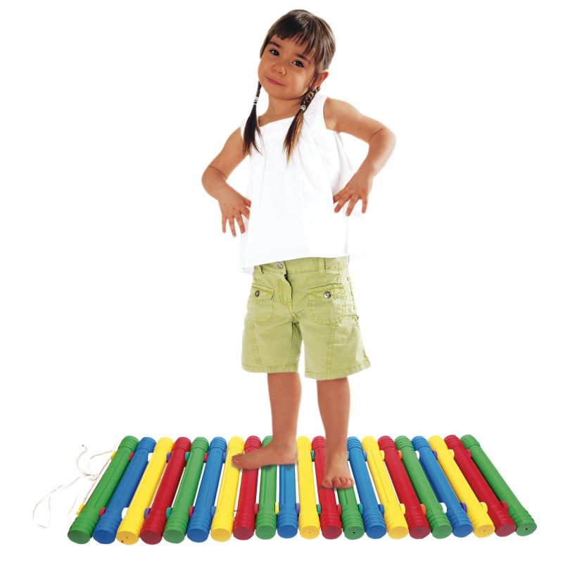 Adecuada para actividades sensoriales, a medida que se afloja el cordón, se aumenta la distancia entre los postes, obligando al alumno a practicar y mejorar su equilibrio.