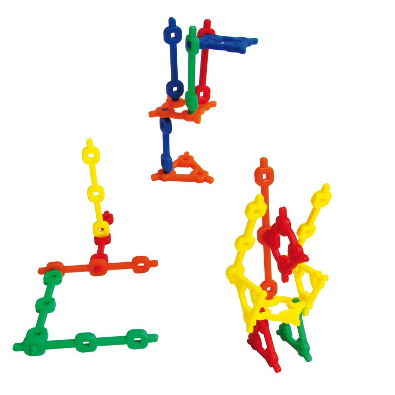 Este material permite al niño desarrollar habilidades de coordinación ojo-mano y psicomotoras. El niño practica el reconocimiento de colores y por su sistema de ensamble practica la orientación.