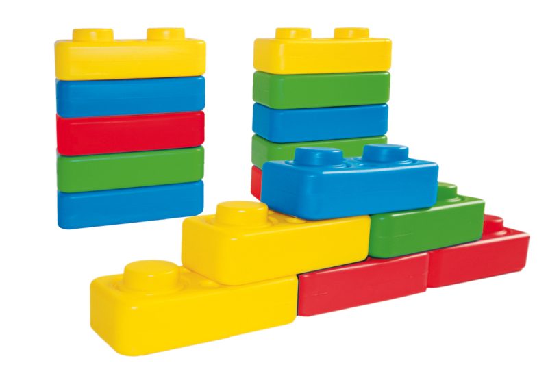 Juego de ensamble, logrando geometrías definidas como paredes de casas, castillos y además formas libres a la imaginación. La variedad en colores permite también introducir al alumno al reconocimiento de los mismos.