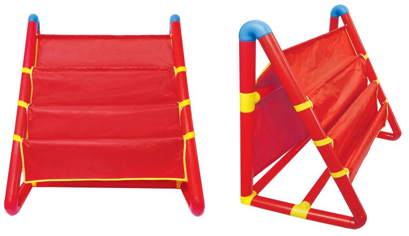 Combinación de estructura tubular, lona y plástico que dan como resultado un atractivo librero para los más pequeños.