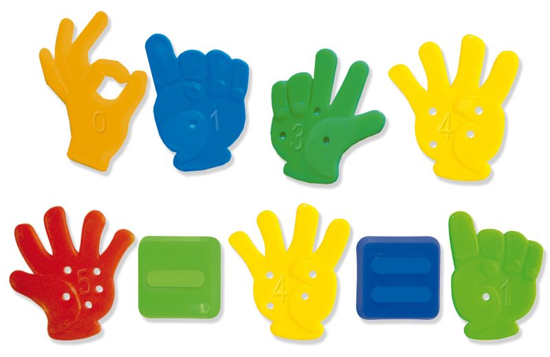 Divertido material en forma de manitas que cuentan con los dedos, permite introducir al niño tanto en el aprendizaje de los números como el concepto de unidades, decenas y centenas. Ayuda a interpolar conceptos numéricos entre ábacos y números.