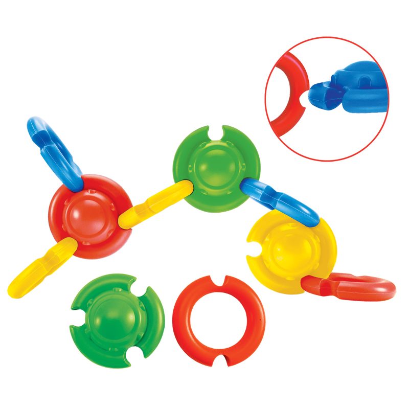 Material para estimular la coordinación fina y gruesa de los niños su forma obliga a unir las piezas ensartándolas en un lugar preciso y hacerlas girar para lograr una unión muy fuerte. Juntar y soltar las piezas, construir formas caprichosas trabajar harán la tarea agradable.