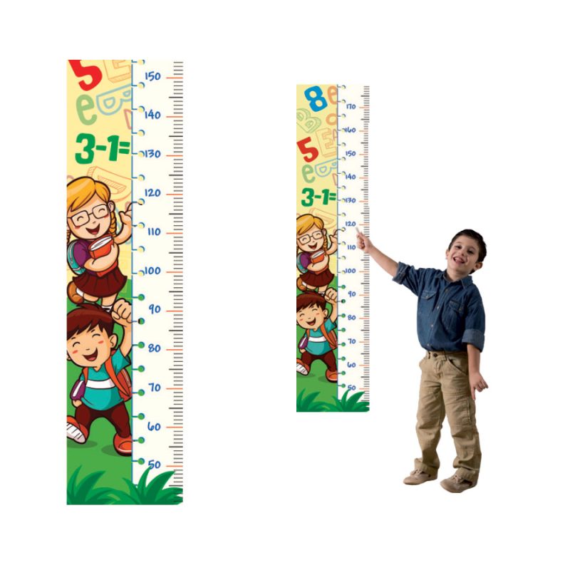 Práctica regla para registrar la estatura del niño con divertidos dibujos. Presentación: 1 pieza de 30 x 140 cm Nivel: Preescolar – Primaria