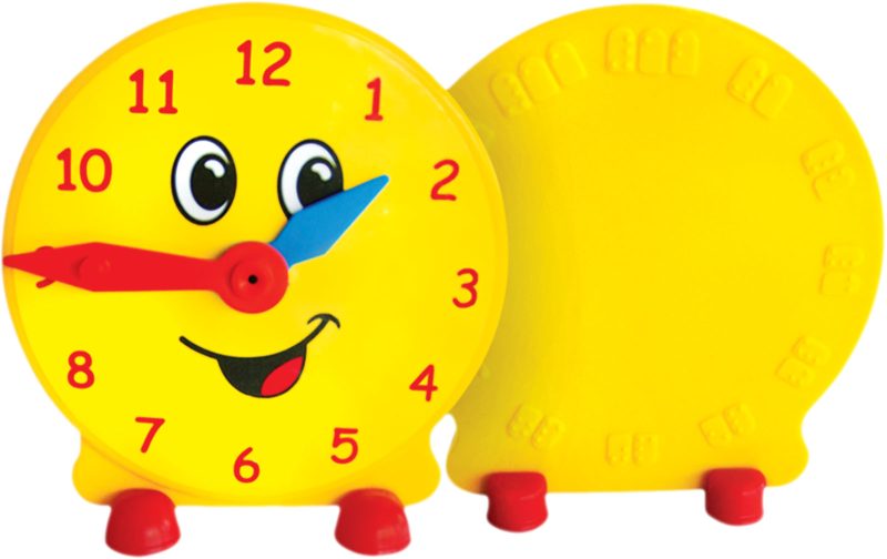 Este juguete introduce al alumno al concepto del tiempo, además de acercarlo a la numeración braille, la sincronización de sus engranes entre horas y minutos lo hace real en el razonamiento de aprendizaje de la hora.