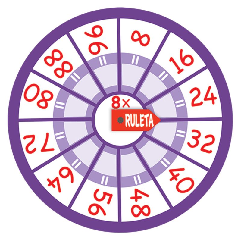 Al girar esta ruleta, se presentan diferentes tipos de ejercicios de multiplicación básica a realizar, lo que permite que el grupo trabaje de forma autónoma y divertida